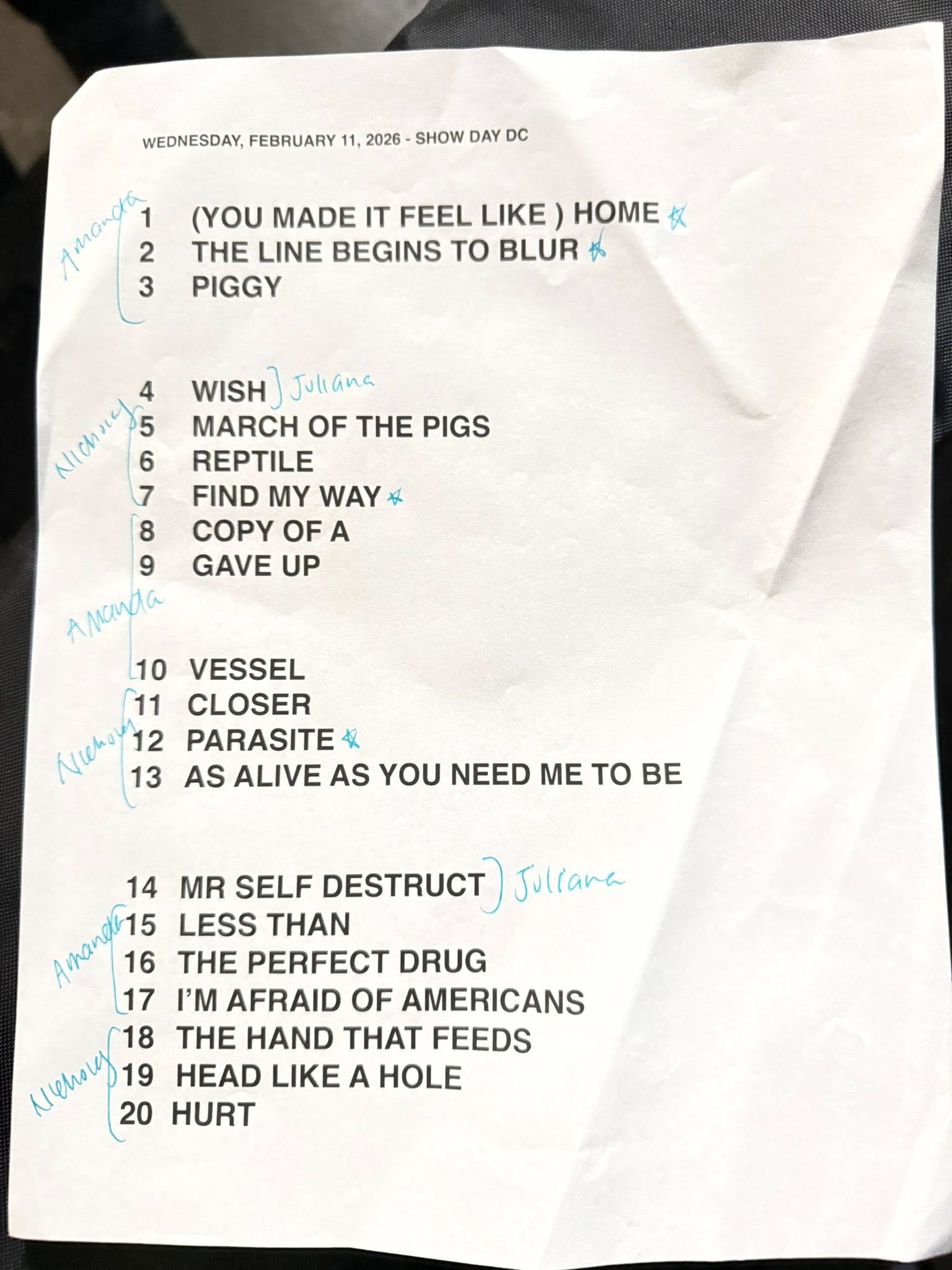 State/Province:This is one of 1 times Nine Inch Nails played in DC
