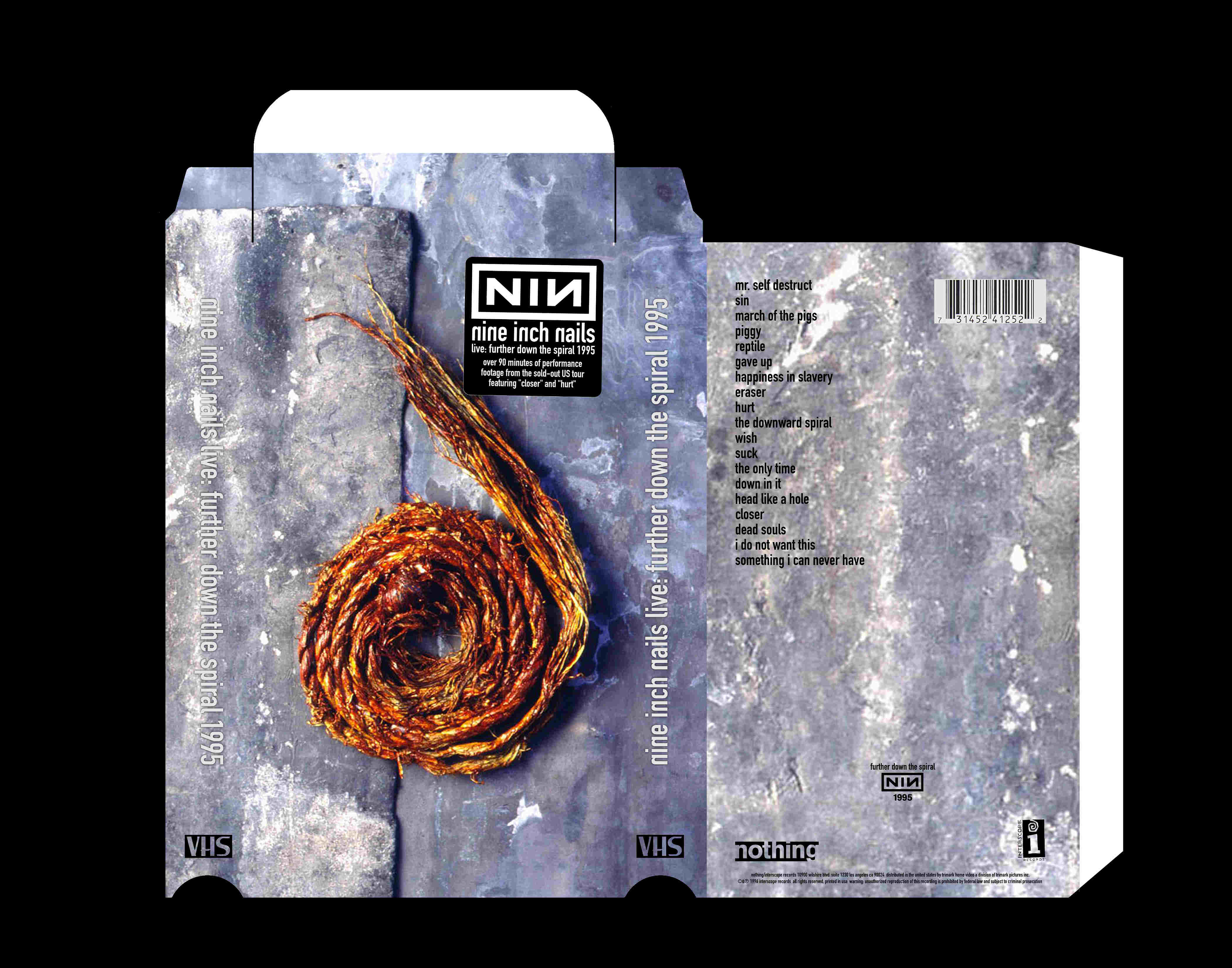 Setlist from the VHS: Mr. Self Destruct, Sin, March Of The Pigs, Piggy, Reptile, Gave Up, Happiness In Slavery, Eraser, Hurt, The Downward Spiral, Wish, Suck, The Only Time, Down In It, Head Like A Hole, Closer, Dead Souls, I Do Not Want This, Something I Can Never Have